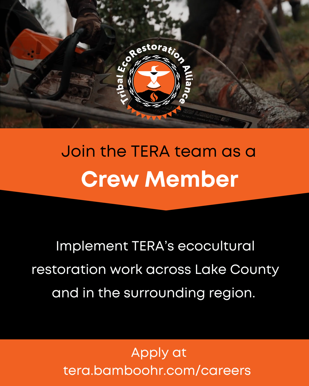 The Tribal EcoRestoration Alliance (TERA) is a community-based, intertribal nonprofit organization that works to revitalize ecology, economy, and culture through indigenous-led stewardship.